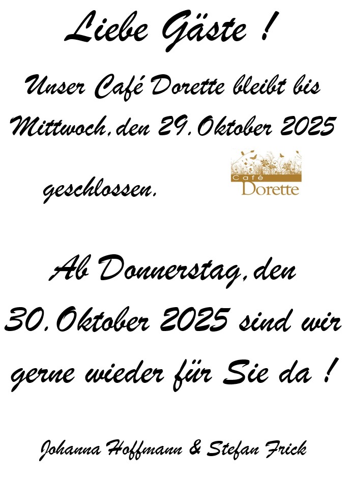bleibt bis Mittwoch, den 29. Oktober geschlossen. Ab Donnerstag, den
